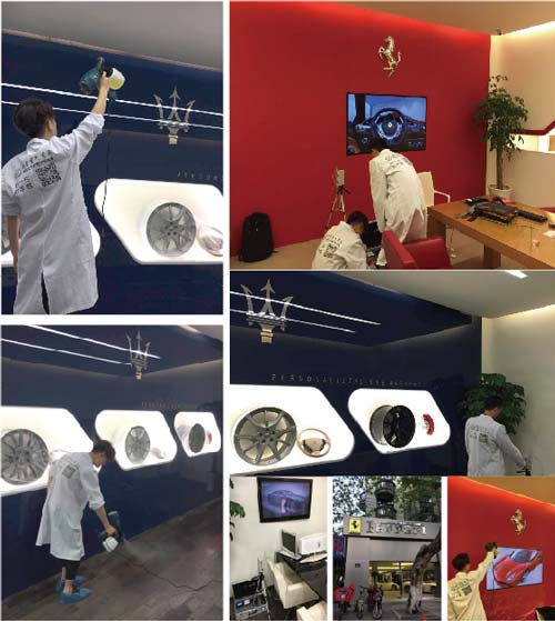 工程背景:作為杭州駿意汽車銷售服務(wù)有限公司在南山路(對(duì)面就是西湖)的一家高品質(zhì)跑車法拉利、瑪莎拉蒂銷售展示廳,裝修后室內(nèi)裝修材料殘留的氣體污染和異味,給展示廳的工作人員和來往客戶,造成了不少困擾。