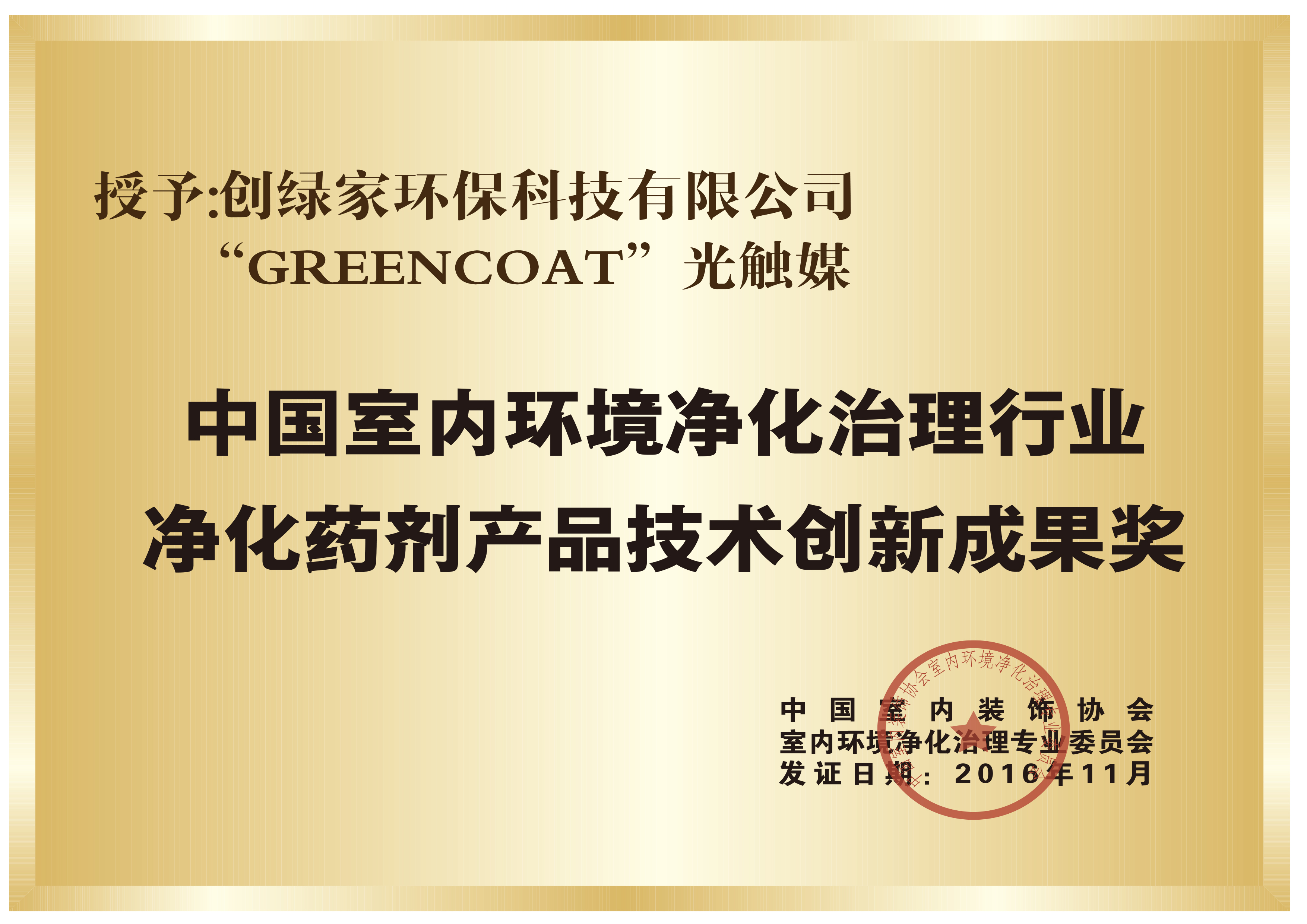從2014年開始,創(chuàng)綠家環(huán)保科技引入彼得·德拜的研究成果,結(jié)合英國進(jìn)口技術(shù)并與行業(yè)***專家合作,成功的將諾貝爾化學(xué)獎研究成果應(yīng)用于國內(nèi)的室內(nèi)環(huán)境凈化領(lǐng)域并成功實(shí)行量產(chǎn),受到了社會各界及同行的一致好評,也因此獲得了2016中國室內(nèi)環(huán)境凈化治理行業(yè)凈化藥劑產(chǎn)品技術(shù)創(chuàng)新成果獎。