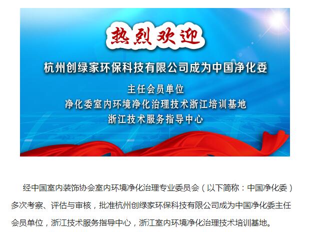除甲醛公司哪家最好?選擇創(chuàng)綠家就是選擇中國凈化委主任會員單位、浙江技術(shù)服務(wù)指導中心、室內(nèi)環(huán)境凈化治理技術(shù)浙江培訓基地。
