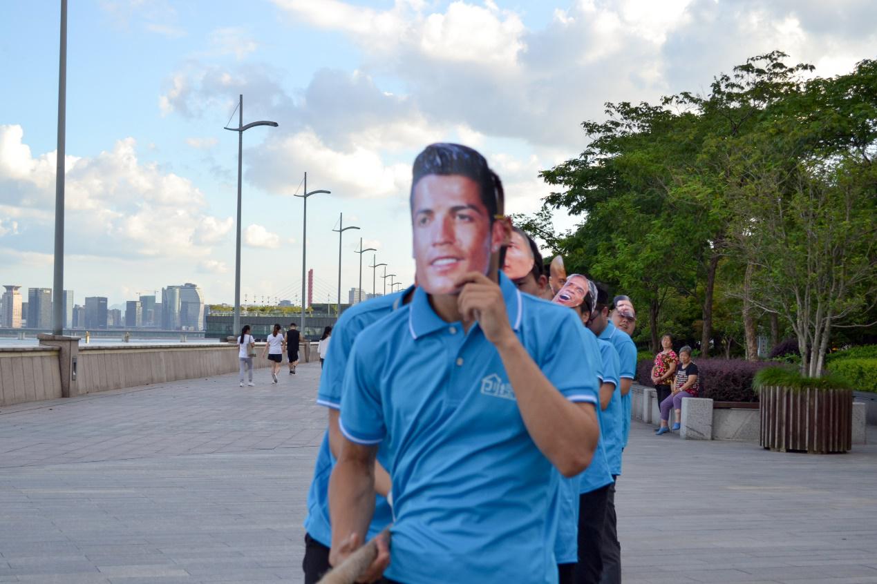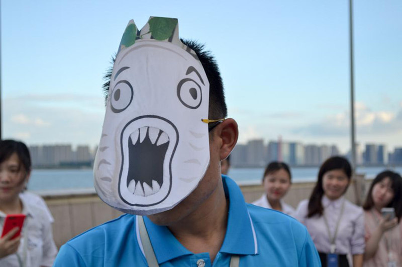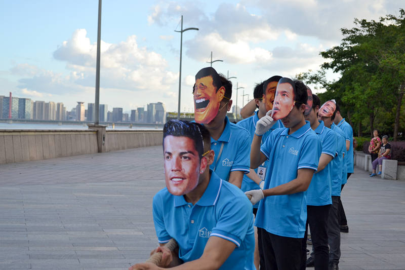 此處省略很多小某,戴了面具進行了惡搞版拔河比賽,引得大家哄堂大笑。