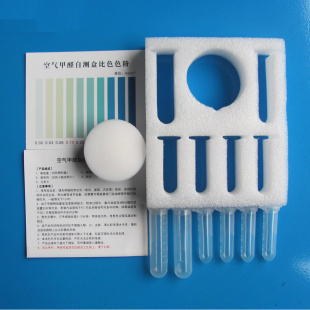 4、將顯色劑全部倒入吸收盒內(nèi),蓋上蓋子,搖勻后放置10分鐘。將吸收盒中的顏色與比色色階進(jìn)行比色,讀出被測(cè)房間的甲醛濃度。