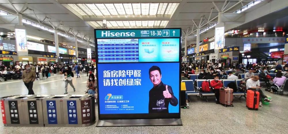 2020年4月30日起,創(chuàng)綠家繼投放廣州、北京高鐵廣告后,再次霸屏上海虹橋站!高鐵站是一座城市信息交流的核心地段,占據(jù)高廣C位就是掌握了全國交通信息流的話語權(quán),這成效在魔都上海尤為突出。