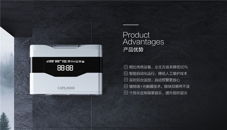 這幾年國家層面大力推進(jìn)數(shù)字城市治理進(jìn)程,中國城市數(shù)字治理正式進(jìn)入2.0時(shí)代,其中,杭州的數(shù)字治理各項(xiàng)指標(biāo)全面***,總指數(shù)位列全國***。創(chuàng)綠家響應(yīng)國家數(shù)字化戰(zhàn)略,推出智慧廁所數(shù)字化改造方案,以自主研發(fā)的智能除味機(jī)、智能取紙機(jī)為核心設(shè)備,運(yùn)用前沿的物聯(lián)網(wǎng)、大數(shù)據(jù)、云計(jì)算等技術(shù),搭配各類傳感設(shè)備,實(shí)現(xiàn)廁所環(huán)境遠(yuǎn)程可監(jiān)控、云端可管理,可為客戶深度個(gè)性化定制后臺(tái),提升廁所數(shù)字管理水平,助力數(shù)字城市治理。